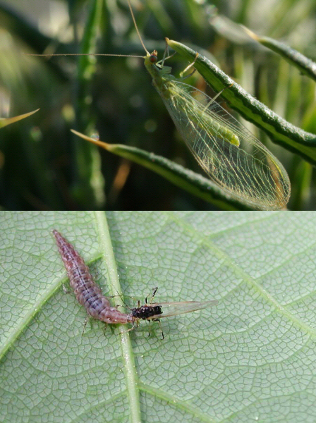 Die Florfliegen gehören zur Familie der Ordnung der Netzflügler. Die Larven sind Nachtjäger von Blattläusen, Milben sowie von Eiern und Larven anderer Insekten.